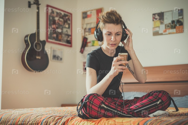 Молодая женщина слушает музыку