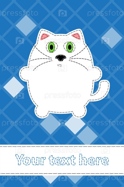 Иллюстрация белой кошки на синем фоне