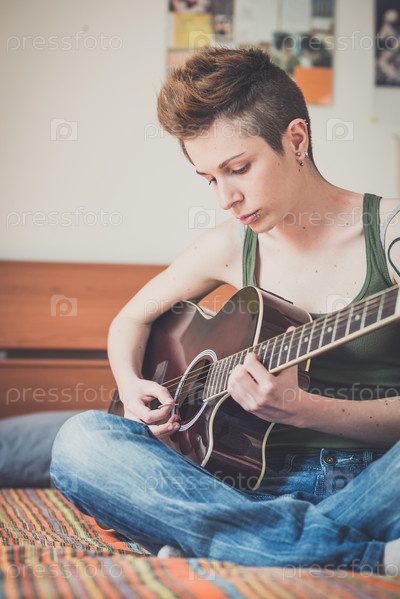 Женщина играет на гитаре