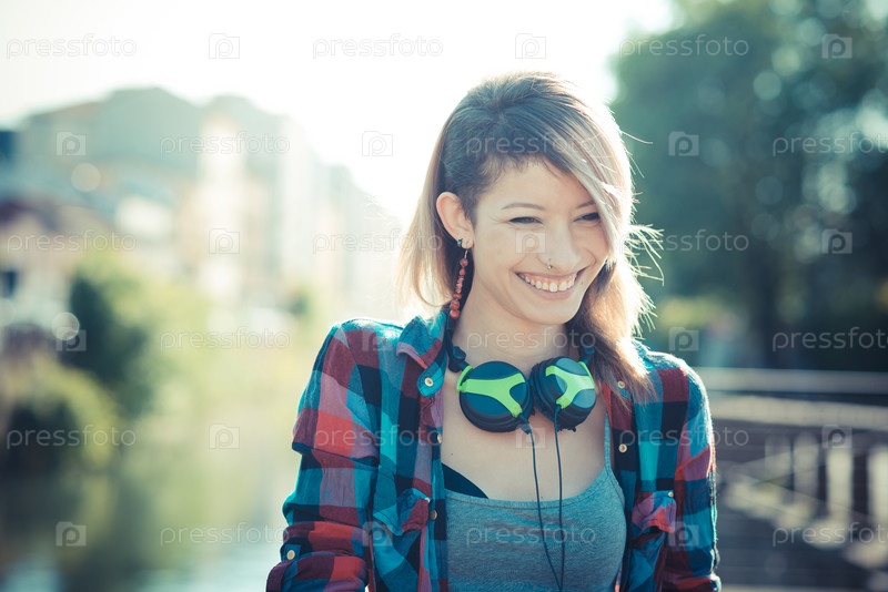 Молодая красивая женщина с наушниками