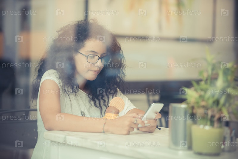 Молодая красивая женщина ест мороженое