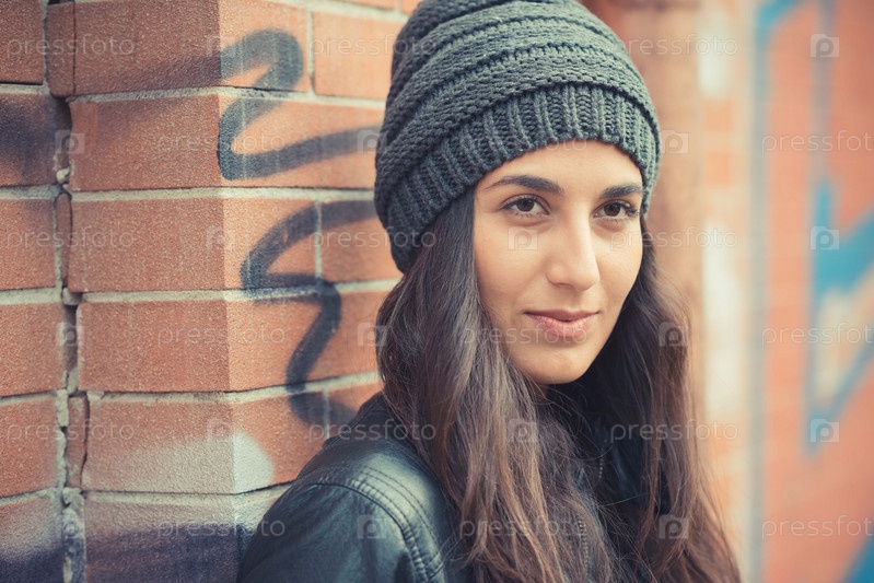 Молодая красивая брюнетка на улице