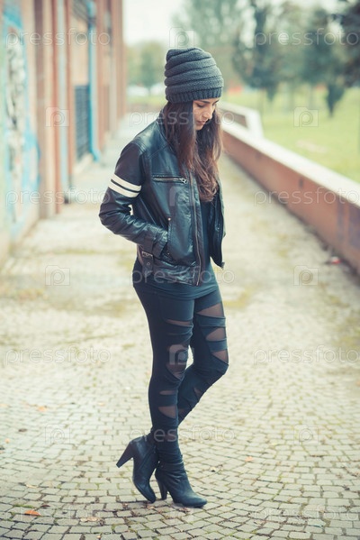 Молодая красивая брюнетка на улице