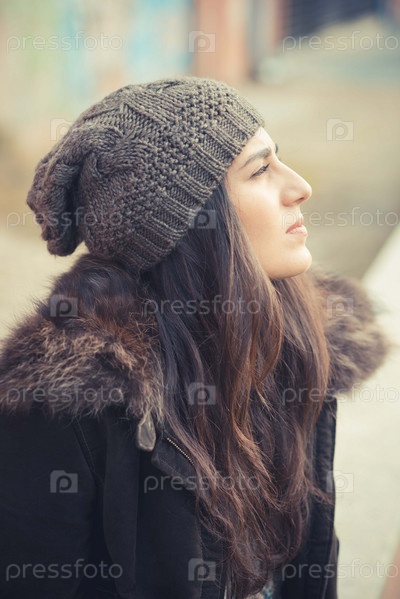 Молодая красивая брюнетка на улице