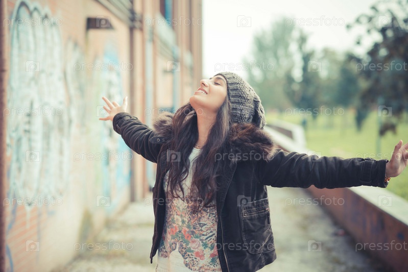 Молодая красивая брюнетка на улице