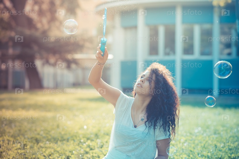 Красивая марокканка пускает мыльные пузыри