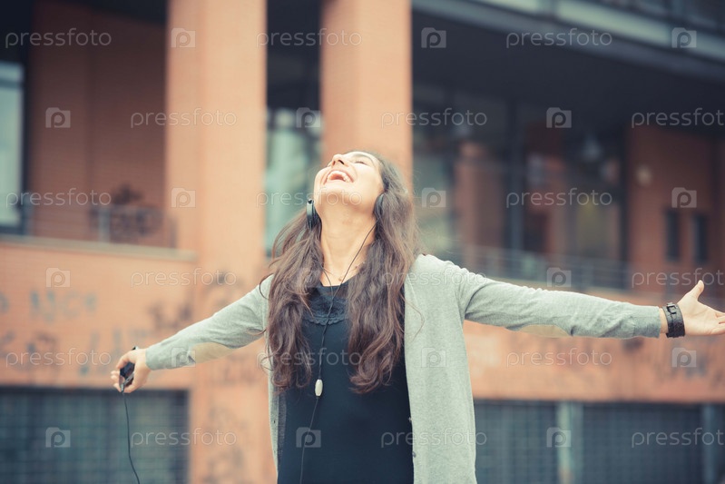 Молодая красивая брюнетка в наушниках