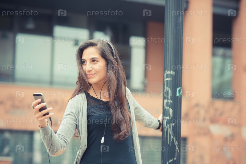 Молодая красивая брюнетка в наушниках