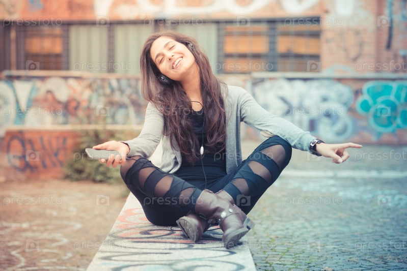 Молодая красивая брюнетка в наушниках