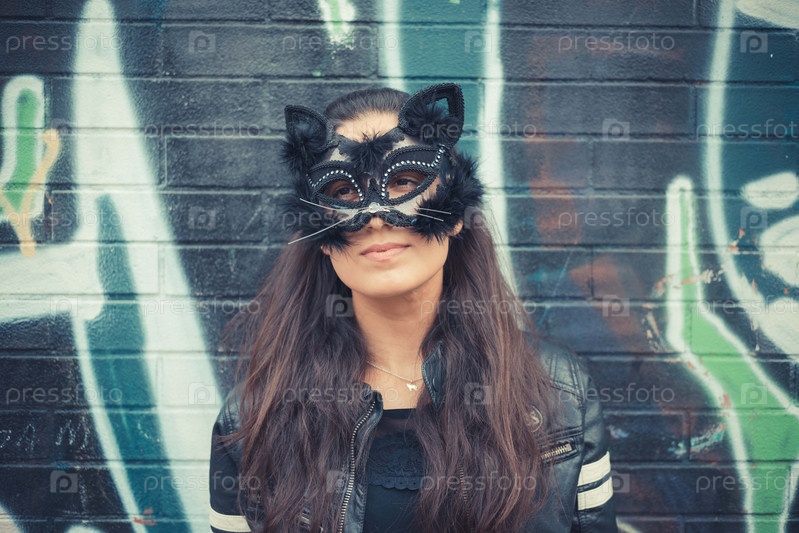 Молодая красивая женщина в кошачьей маске