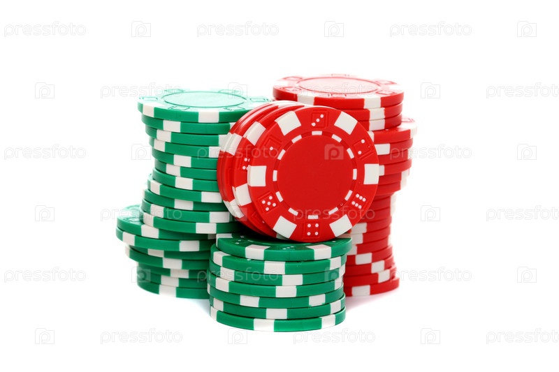 Стопки покерных фишек на белом фоне