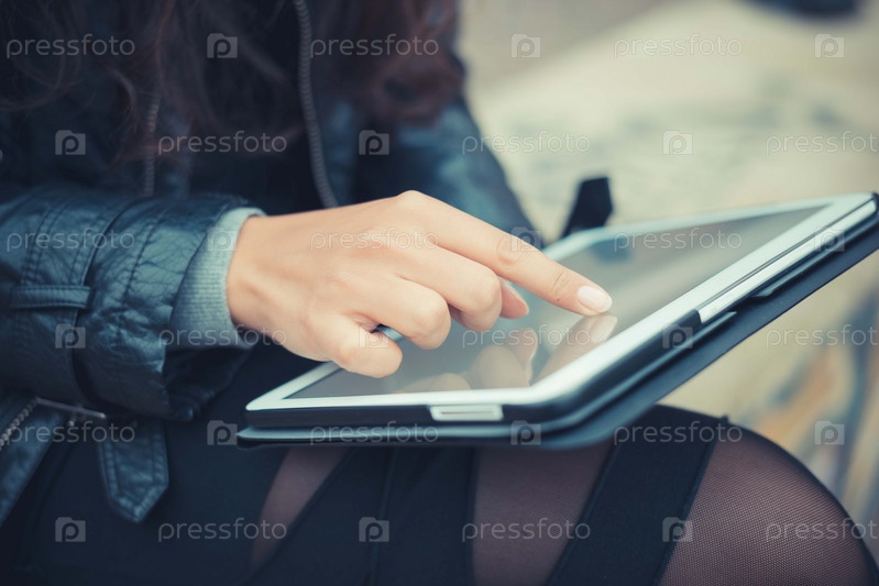 Руки женщины с планшетом