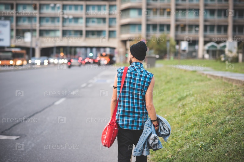 Молодой бородатый хипстер