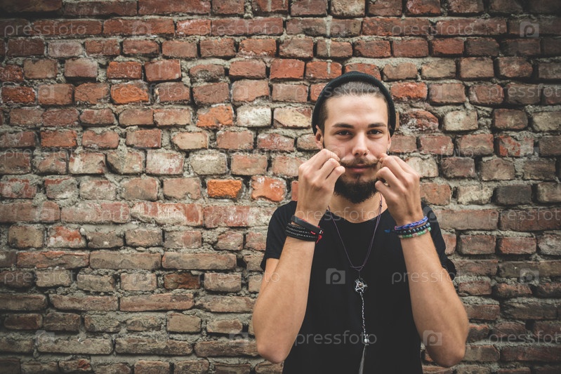 Молодой красивый бородатый хипстер