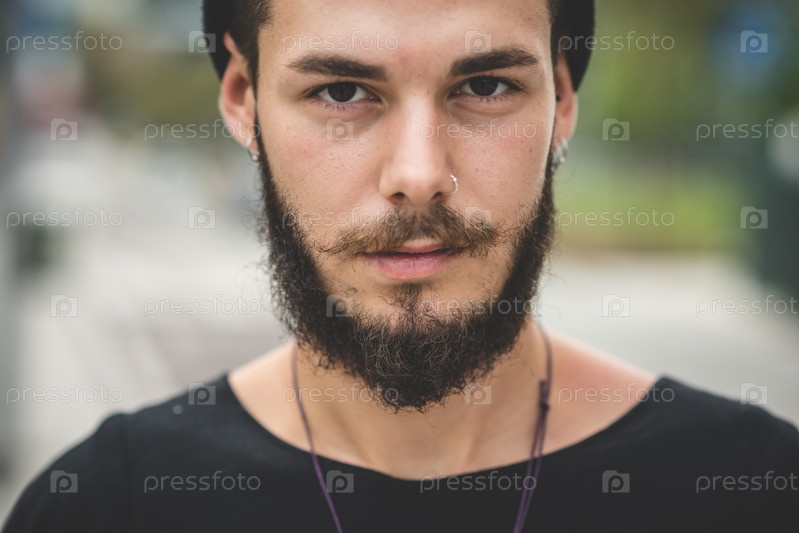 Молодой красивый бородатый хипстер
