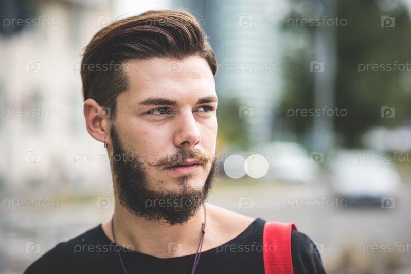Молодой красивый бородатый хипстер