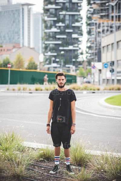 Молодой красивый бородатый хипстер