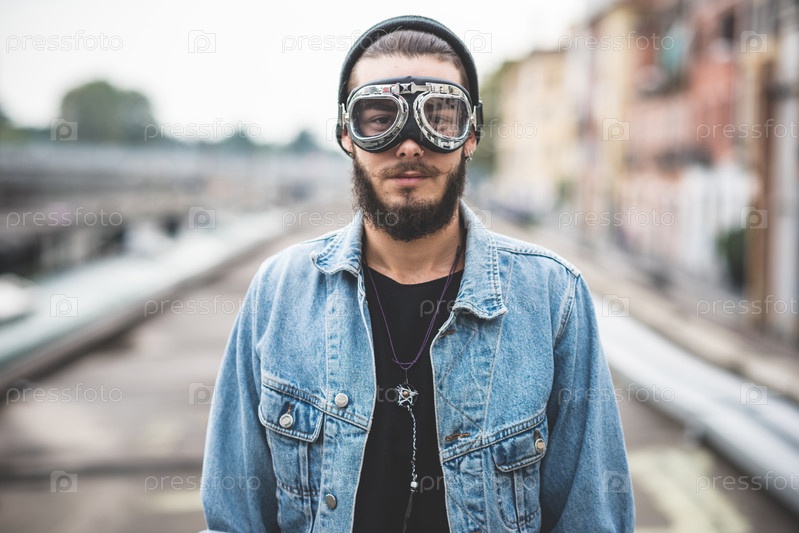 Молодой бородатый хипстер