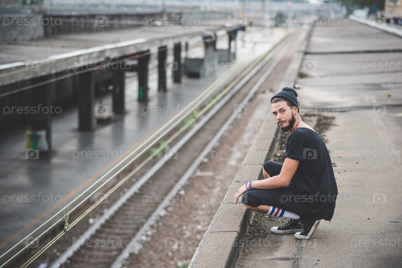 Молодой бородатый хипстер