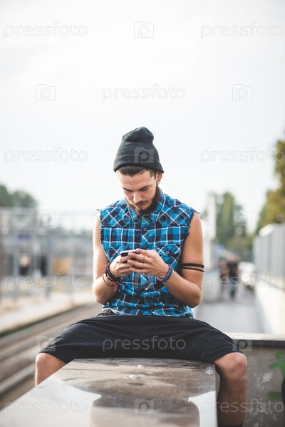 Молодой красивый бородатый хипстер