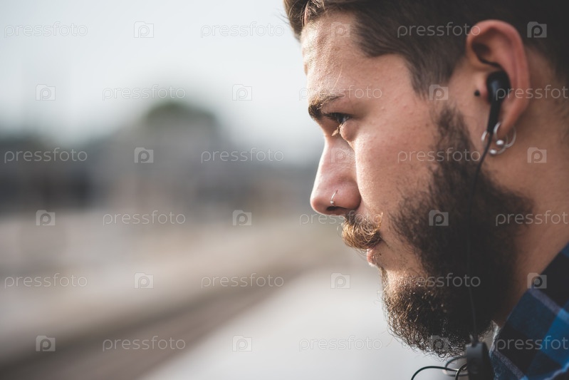 Молодой бородатый хипстер на улице