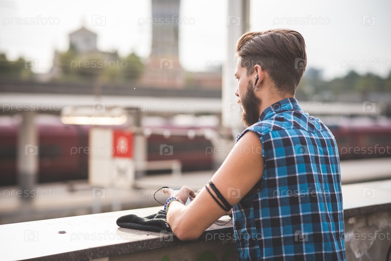 Молодой бородатый хипстер на улице
