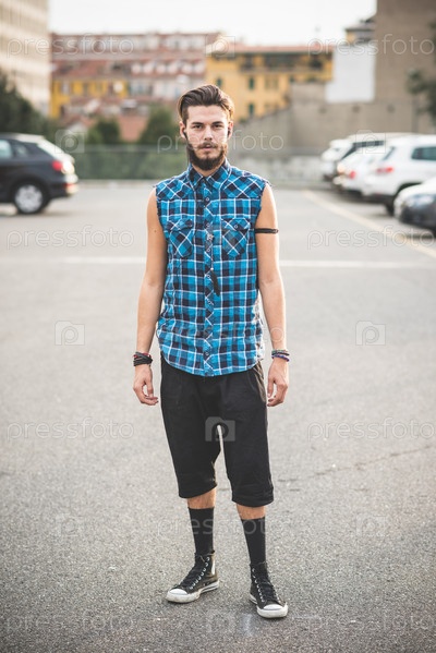 Молодой красивый бородатый хипстер