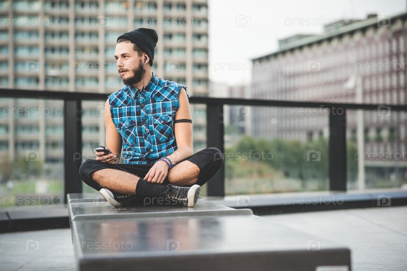 Молодой красивый бородатый хипстер
