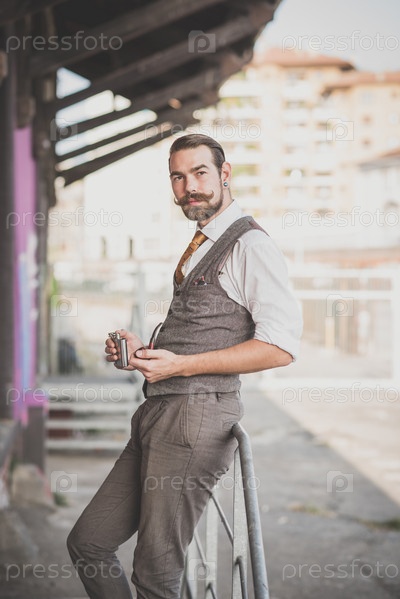 Красивый бородатый мужчина-хипстер на улице