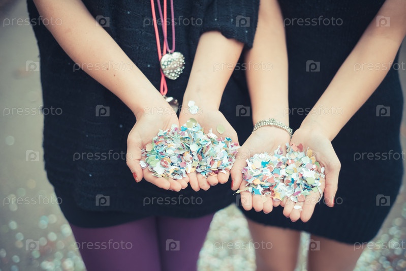 Руки с конфетти