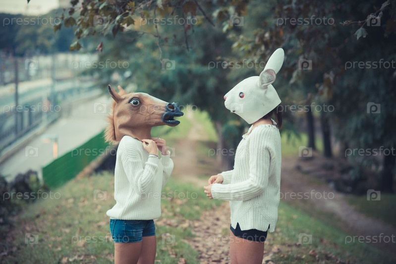 Женщины в масках лошади и кролика