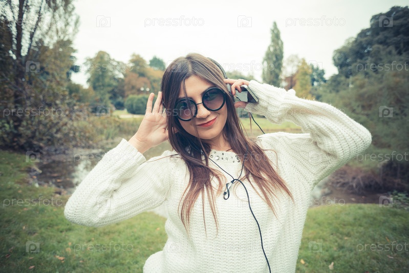 Молодая красивая брюнетка в наушниках
