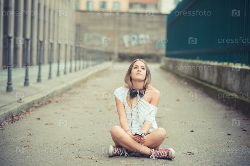 Красивая девушка слушает музыку