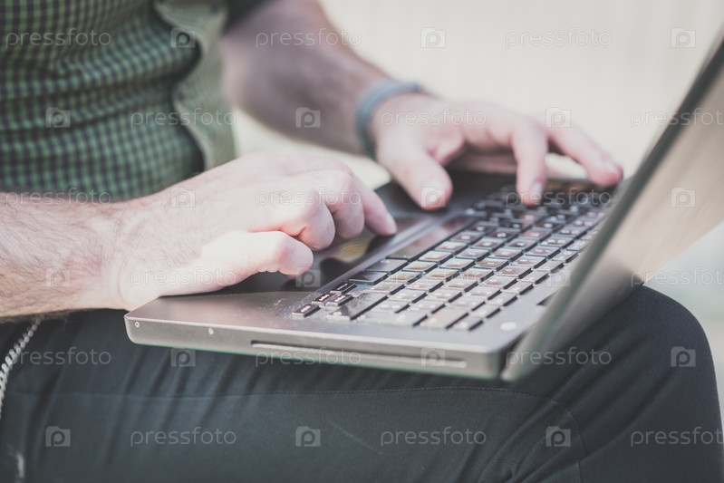 Мужские руки с ноутбуком