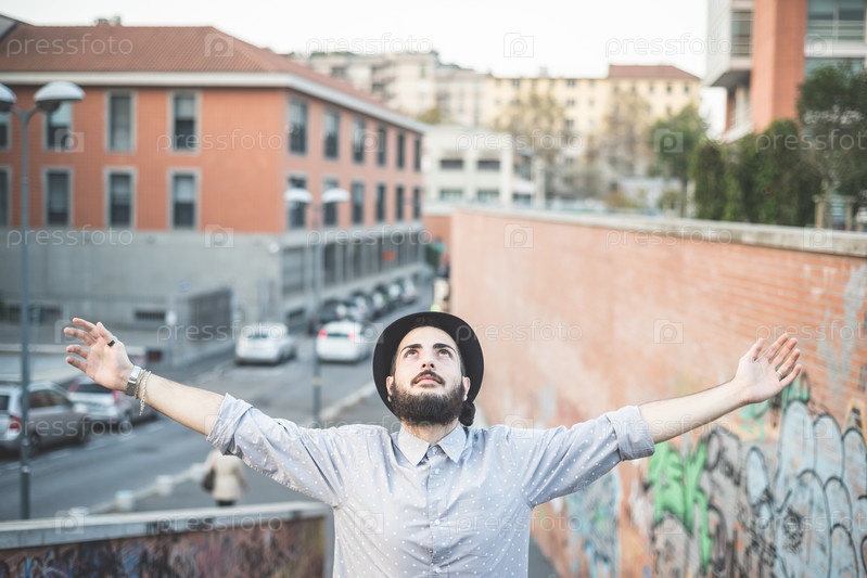 Молодой мужчина-хипстер в городе