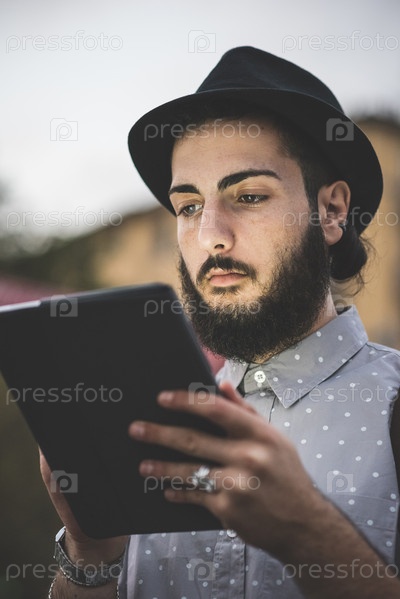 Молодой хипстер с планшетом