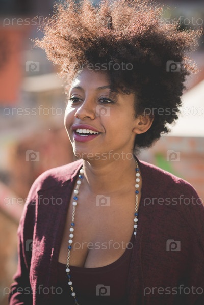 Красивая темнокожая кудрявая женщина