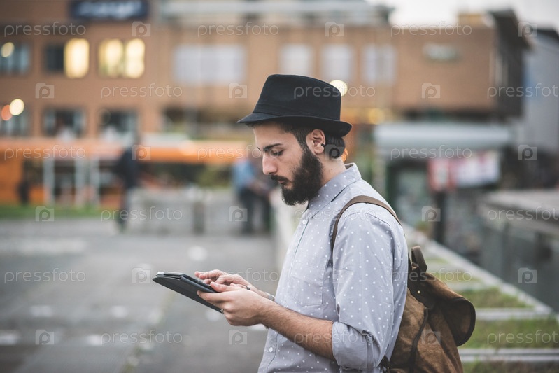 Молодой хипстер с планшетом