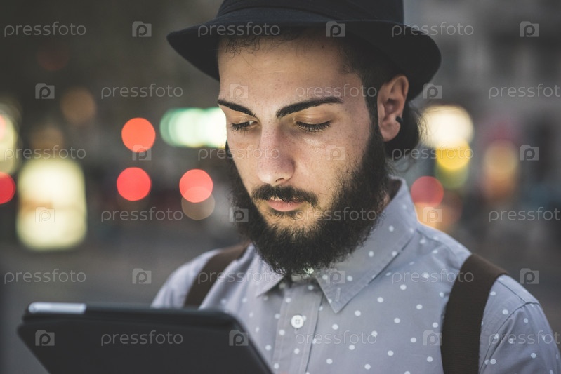 Молодой хипстер с планшетом