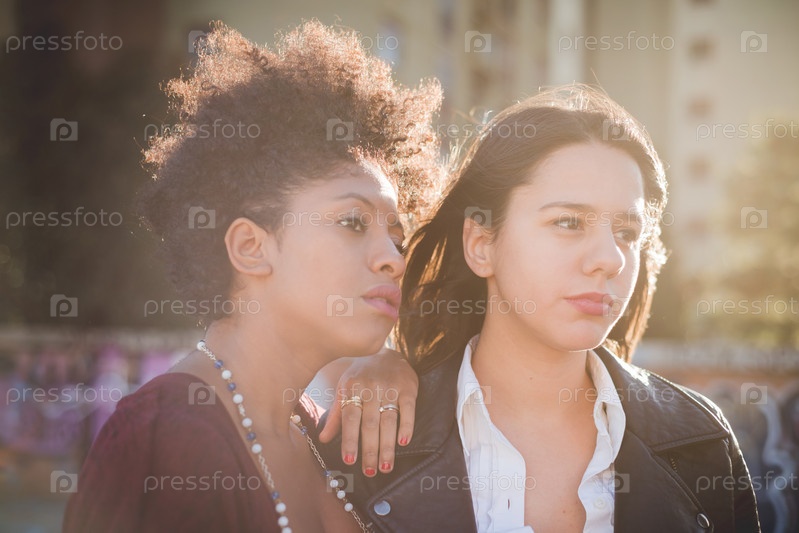 Две молодые женщины в городе