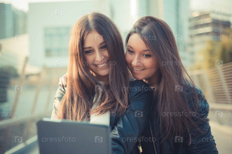 Два красивые подруги в городе