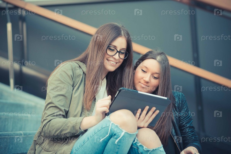 Два красивые подруги в городе