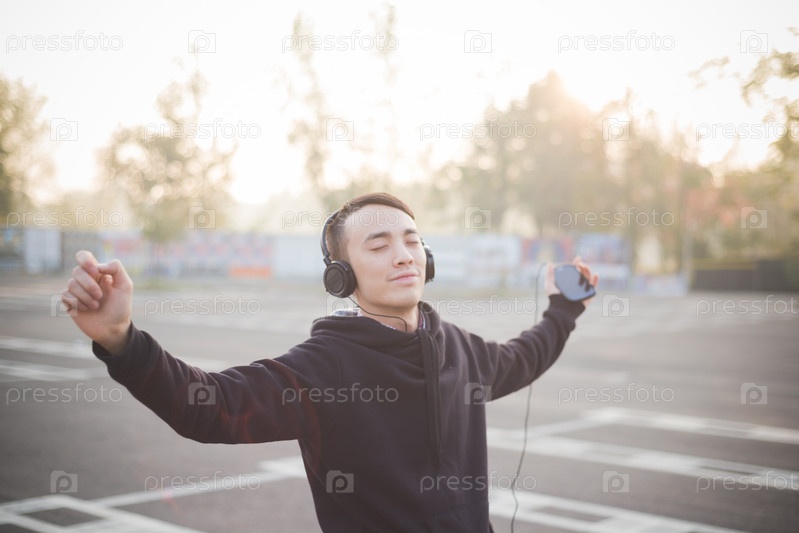 Молодой азиат в наушниках