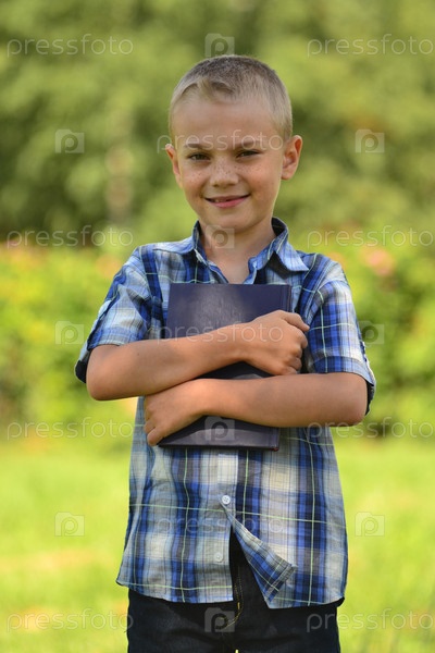 Мальчик с книгой в парке