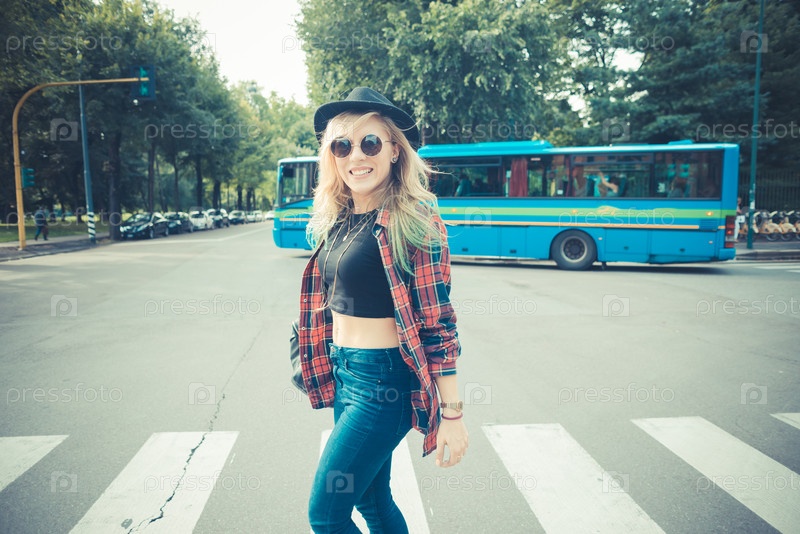 Красивая светловолосая девушка-хипстер