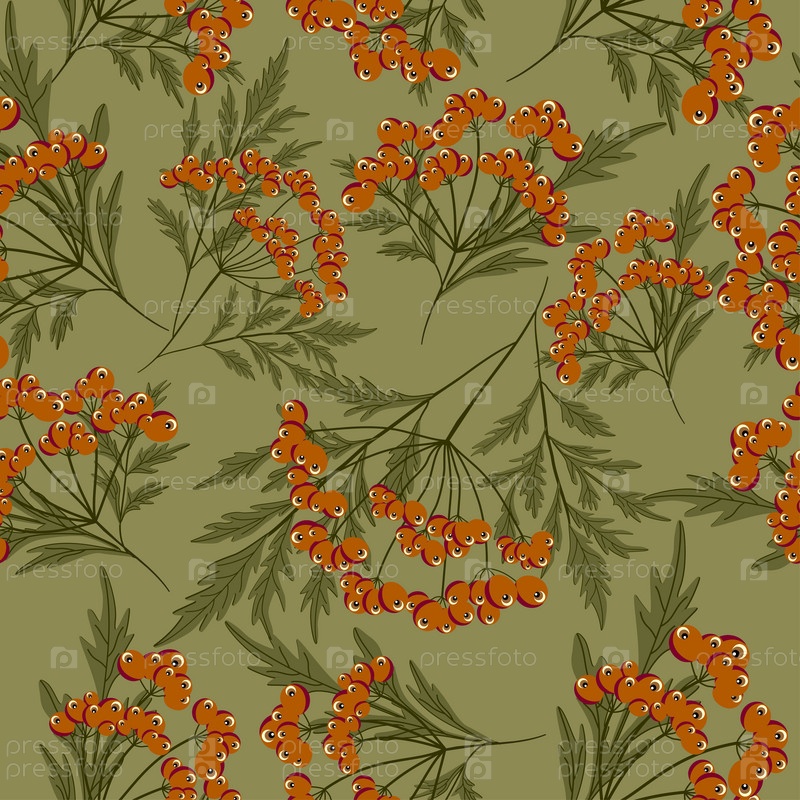 Бесшовный фон с зелеными листьями и красными ягодами