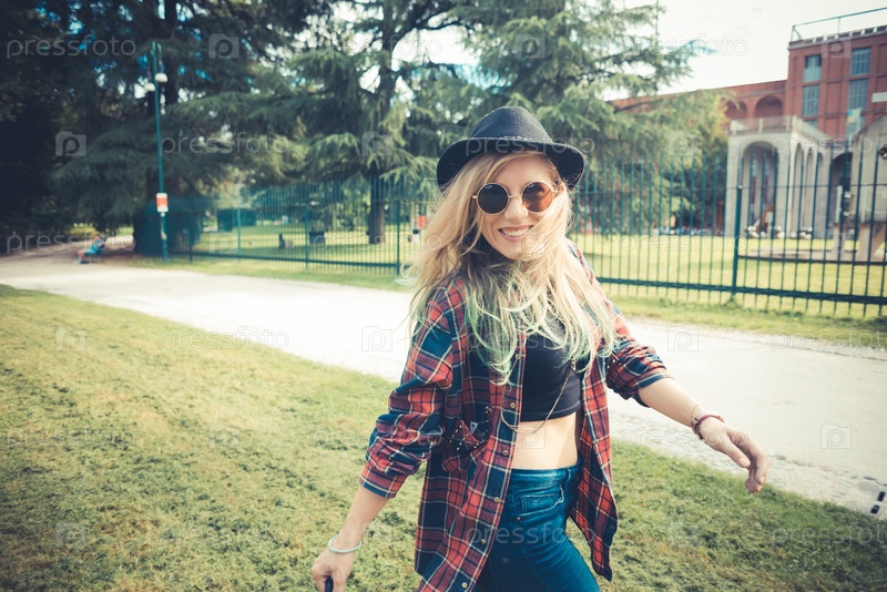 Светловолосая девушка-хипстер