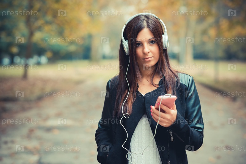 Молодая красивая брюнетка в парке
