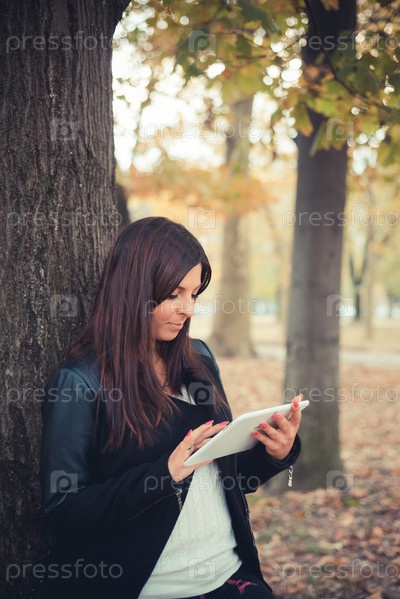 Молодая красивая брюнетка в парке