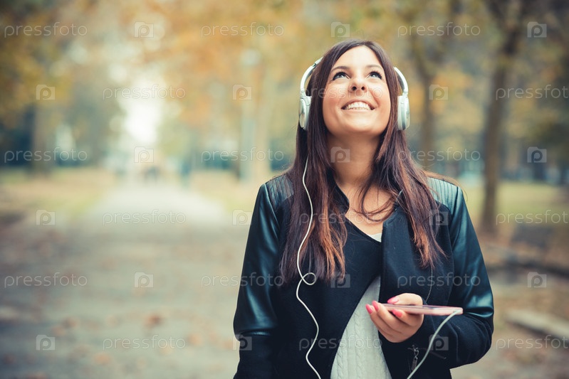 Молодая красивая брюнетка в парке